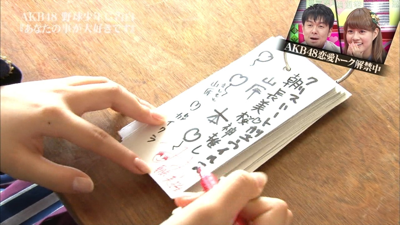 まゆゆ認定!番組史上最高の告白!【恋愛総選挙8/7】 2014年08月07日 カテゴリ:渡辺麻友 テレビ mixiチェック 指原莉乃 渡辺麻友 柏木由紀 ほかまゆゆ認定!番組史上最高の告白!【朝長美桜】 ▽野球部の引退試合に突撃で涙のサプライズ!指原&柏木&まゆゆ大興奮! ▽今週は胸がキュンキュンして止まらなくなりますSP タグ :#渡辺麻友#まゆゆ#恋愛総選挙#TV 「渡辺麻友 テレビ」カテゴリの最新記事 コメント 1 よしし 2014年08月07日 07:03 id:QX6O6sdV0 まゆゆが綺麗なお姉さんになってきたので、みおたすの可愛いさが最近気になります。 福岡握手会 まゆゆのネームプレートを見つけて み まゆさん好きなんですか? 俺 大好き み みおの事は?(寂しそうに) 俺 ぅぅっ 大好きっ み 無言で100万ドルの笑顔 俺 無言で放心状態・・・ 剥がし 可愛いは正義です´д` ; 2 まゆゆっ子 2014年08月07日 07:23 id:J6m8v.q20 これは良い告白!美桜ちゃん可愛いですね。 そして、安定のヨーロッパの貴族!麻友ちゃん素敵! 3 杉田邦晃 2014年08月07日 07:32 id:IzVfvSCyO 恋愛総選挙も波に乗り人気が出ているようですね、朝長美桜も高校時代の甘い青春を大事にして欲しいまゆゆは疲れが見えているようです頑張れ。 5 杉田邦晃 2014年08月07日 21:28 id:i2aTF1i9O 画像でしか見てないけどとても元気そうだ良かった、まゆゆに元気もらいました有り難う。 6 まゆまゆ 2014年08月08日 06:51 id:geQFCRiq0 今しっかりみました。 みおちゃんと相手の子の純粋さに泣けてしまった。 それにしてもまゆちゃん、大人になりました。 この番組はまゆゆが。 AKBINGOはぱるるが。 後輩を引き出していく番組なのですね。 7 杉田邦晃 2014年08月08日 12:47 id:eG0eL43pO 踊りに集中する人と歌う人をABCに分ければ一人一人の負担が無くなるかも知れない、たまにソロで歌って3~5人位で歌えばごちゃごちゃした感じに聞こえない更にローテーションをかえれば歌と踊りのチームサプライズが出来ると思う、多分休み無しに歌い続けても5曲か6曲位が限界で後はのどががらがらになって辛いと思うから。グループでの公演を楽しみにしています。参考エグザエルのバックダンサー 8 朝から晩まで 2014年08月08日 14:49 id:WTtmNAES0 やはり、女の人の可愛さ、美しさは顔かたちでなく、そのひとの表情だなあ! 確かに、まゆゆは表情豊かになった。 9 クレア 2014年08月08日 21:14 id:Xb8.3fpI0 まゆゆの表情豊かで発言も面白い!あっという間でした、放送時間短い(´`:) 来週の予告もまゆゆでてますね☆ 予告だけまゆゆの映像使ってるときあるから見てみないとわからないですが、 まゆゆもう、レギュラーですね! 一回目の時は、もうまゆゆに何を言わせようとしてるんやと心配でしたが、まさかこんな面白いことになるとは!! コメントする コメントフォーム 名前 コメント 評価する リセット リセット 顔 星 投稿する 情報を記憶