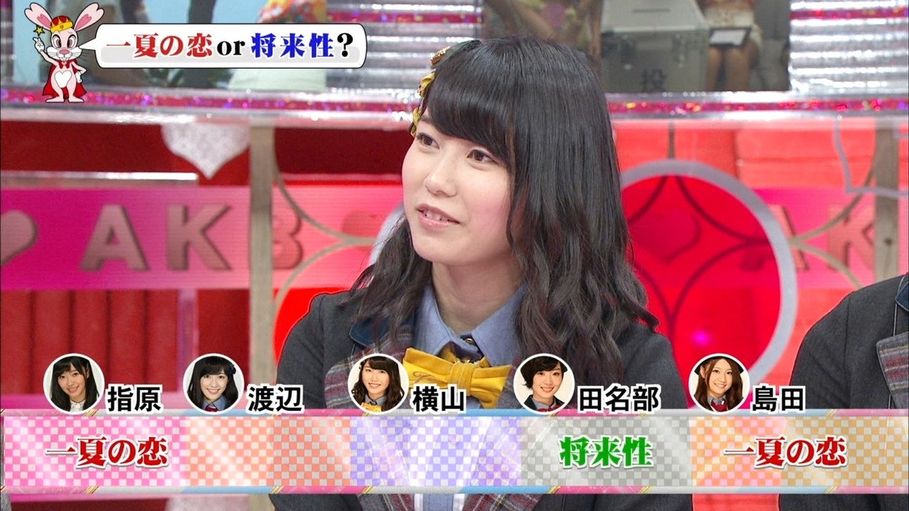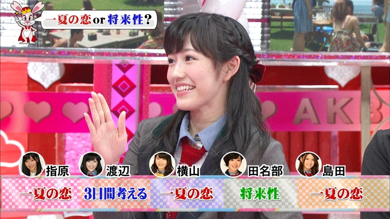 まゆゆ、流石や!「3日間考える」【恋愛総選挙8/14】 2014年08月15日 カテゴリ:渡辺麻友 テレビ mixiチェック >毎週水曜日24:10~24:35指原莉乃 渡辺麻友 田名部生来 島田晴香 AKB48が海辺のチャラ夏パーティーに絶句▽プールにビキニでダイブ!サンオイルの塗り合い!ビーチベッドで超密着▽みなさん、夏はもうはじまってますSP! タグ :#渡辺麻友#まゆゆ#恋愛総選挙#TV 「渡辺麻友 テレビ」カテゴリの最新記事 コメント 1 よしし 2014年08月15日 07:55 id:hYDH17x.0 困り顔のまゆゆ。十分ぱるるに対抗出来ますね。 はるぅ〜面白すぎでした。 2 杉田邦晃 2014年08月15日 08:31 id:aEXwj3q6O 恋愛総選挙は昔とんねるずがやっていた紅クジラ団(結婚相談所)見たいな事もやるのかな? 3 まゆまゆ 2014年08月15日 08:39 id:9bwyzWJ20 数人の声が飛び交っていてもまゆゆの声って聞き取りやすい。 まゆゆそこを活かすんだ〜! 4 クレア 2014年08月15日 11:13 id:bki.qO380 今週もおもしろかったです。 まゆゆのどんな表情も可愛くてたまらないですね♪ 子どもか!なんて手厳しいコメントとかププッて笑っちゃいます(^^) コメントする コメントフォーム 名前 コメント 評価する リセット リセット 顔 星 投稿する 情報を記憶
