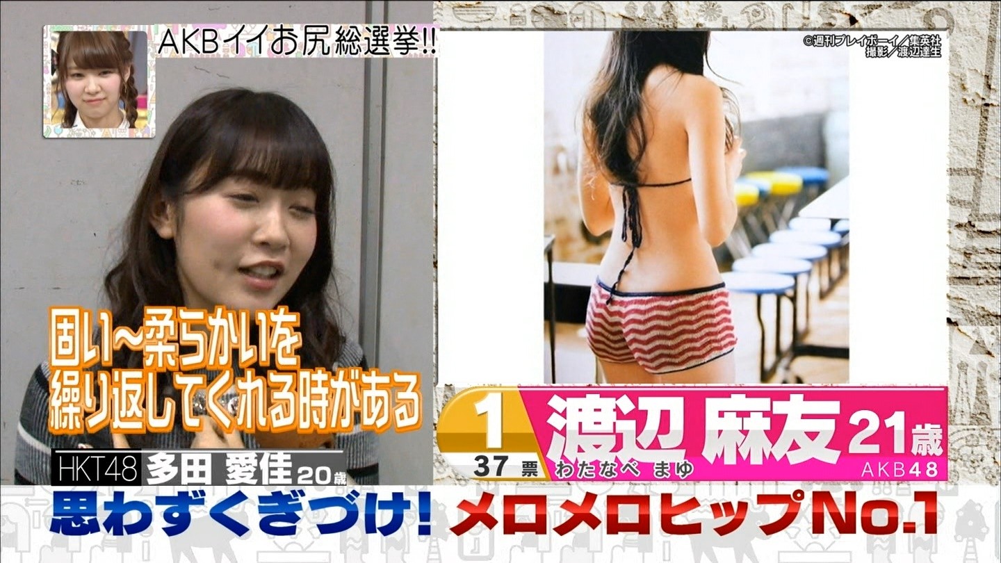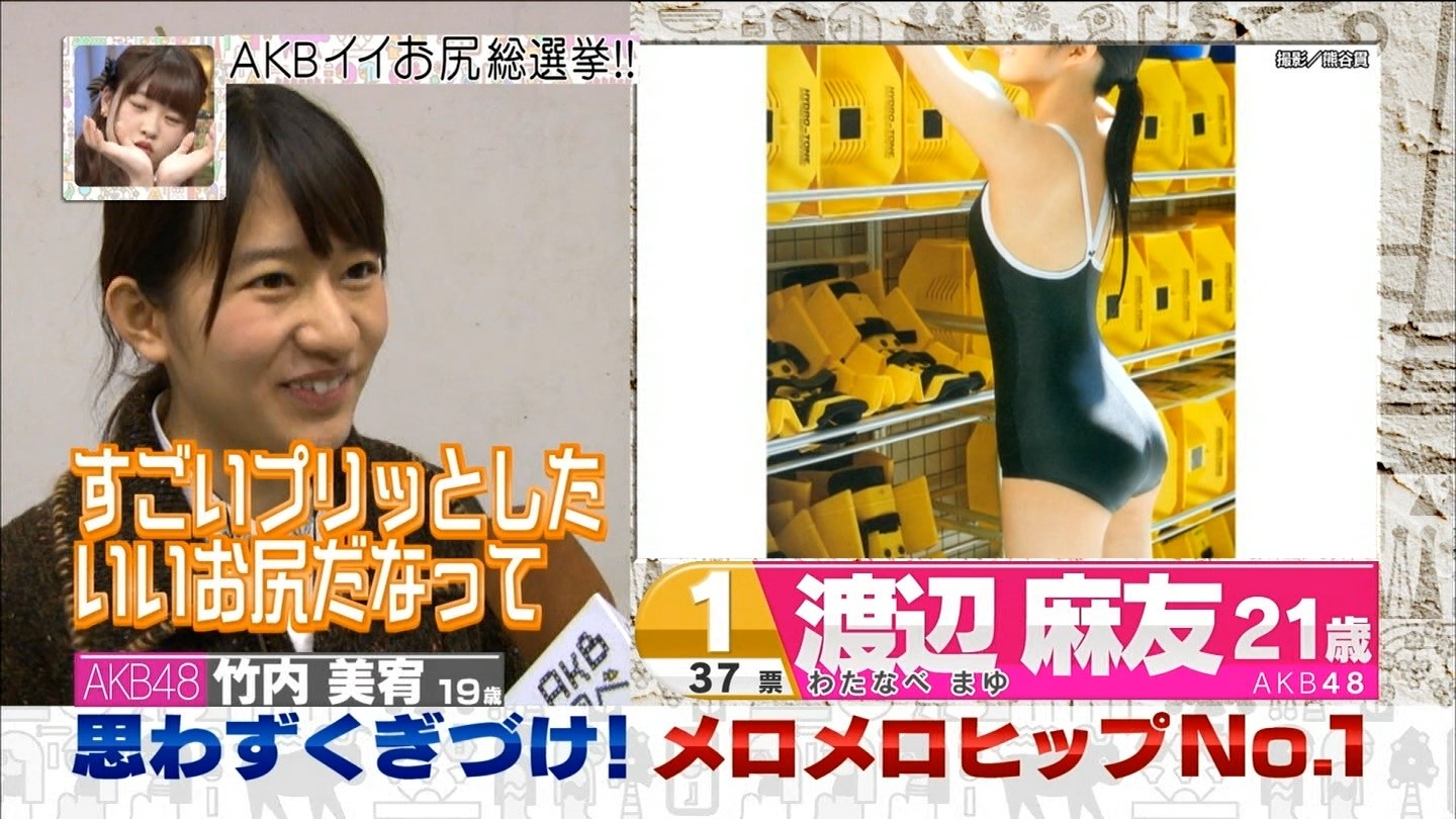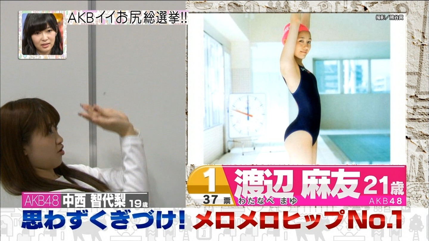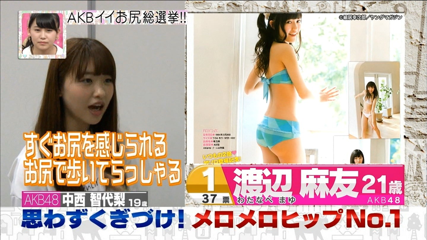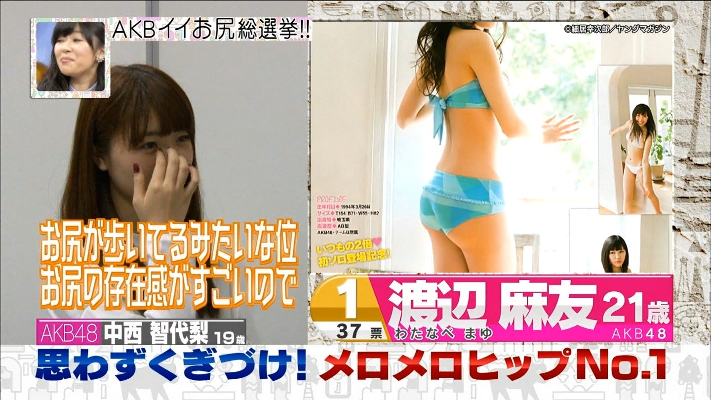 37票を獲得し思わずくぎづけ!AKBメロメロヒップNo.1で渡辺麻友が1位になりました。