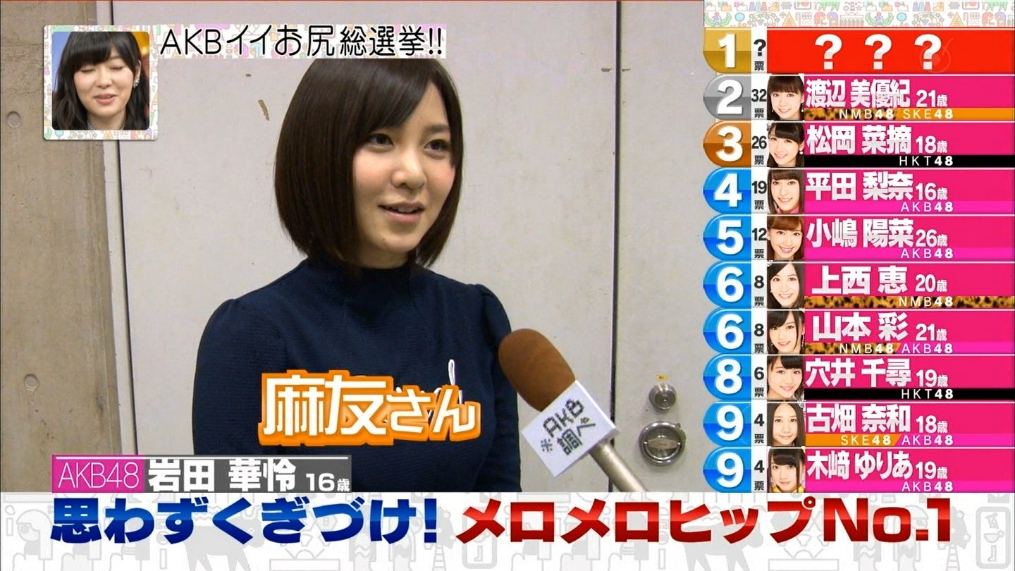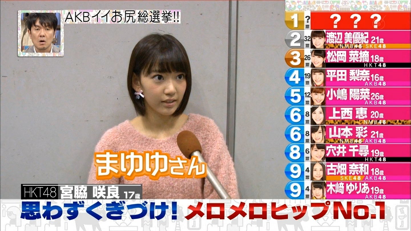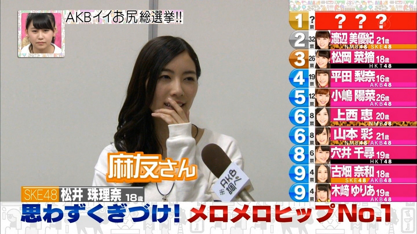 おしりランキングの予告を見た時にもうわかってはいましたが、やはりまゆゆでしたね。