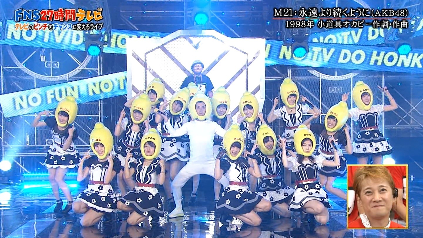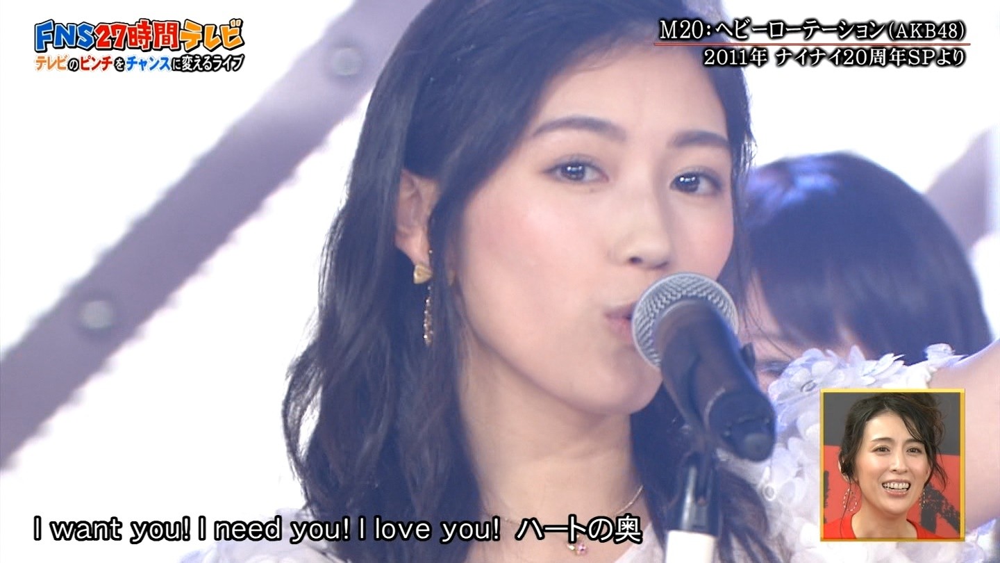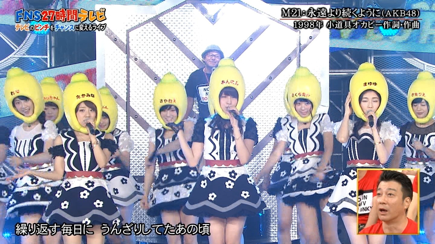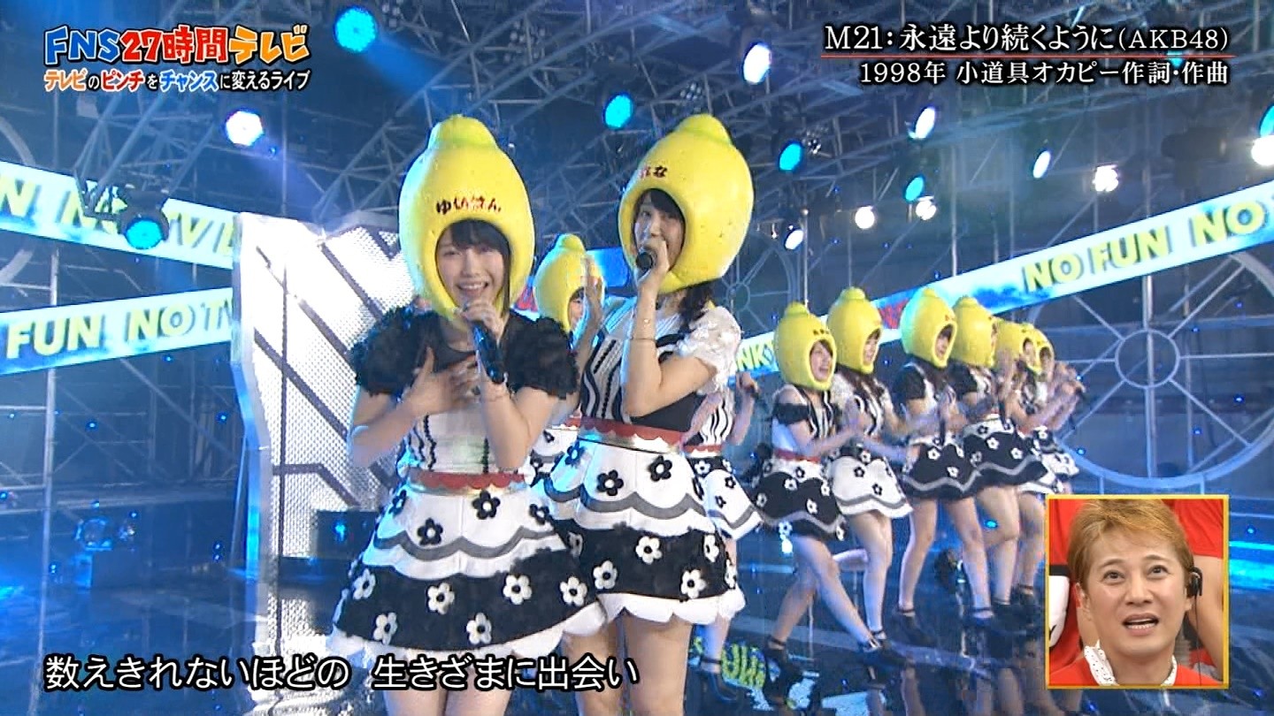 FNS27時間テレビ 18:40頃からのテレビのピンチをチャンスに変えるライブにて「会いたかった」「ヘビーローテーション」「永遠より続くように」を披露しました。