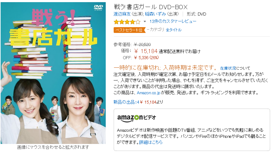 「戦う!書店ガール」のDVDBOXがAmazonでベストセラー1位! 2015年09月16日 カテゴリ:渡辺麻友 まゆゆ情報渡辺麻友 テレビ mixiチェック 初回特典とかないし、あとでゆっくり・・・なんて思っていたら、いつの間にか「戦う!書店ガール」のDVDBOXが発売日に。慌ててAmazonで注文しようとしたら、在庫切れ・・・でも!ベストセラー1位!DVD > テレビドラマ > 日本のTVドラマ > ジャンル別 > 全タイトルで1位!になってます! 戦う!書店ガール DVD-BOX新品価格¥15,184から(2015/9/16 01:41時点) タグ :#渡辺麻友#まゆゆ#書店ガール#DVD 「渡辺麻友 まゆゆ情報」カテゴリの最新記事 「渡辺麻友 テレビ」カテゴリの最新記事 コメント 1 SAGA 2015年09月16日 10:23 id:7GfU3HJk0 Blu-rayで出してくれないかな。 本当に残念。 2 管理人 2015年09月16日 10:51 id:6n2Kkbg10 >SAGAさん ホントそう思います・・・ 3 ちゃぺ 2015年09月16日 12:23 id:2CSjVkuF0 関テレショップで予約しました♪ コメントする コメントフォーム 名前 コメント 評価する リセット リセット 顔 星 投稿する 情報を記憶