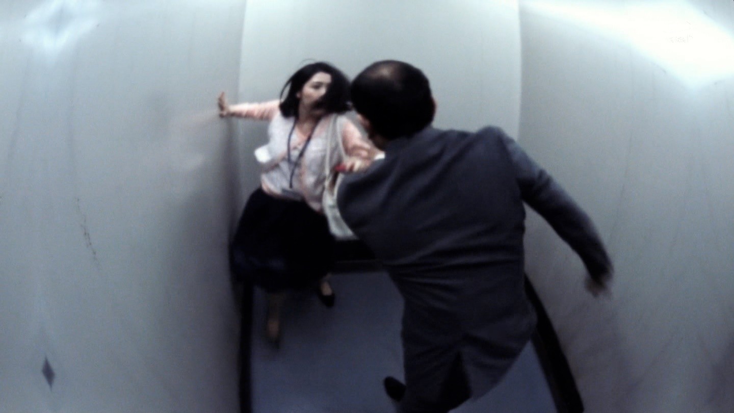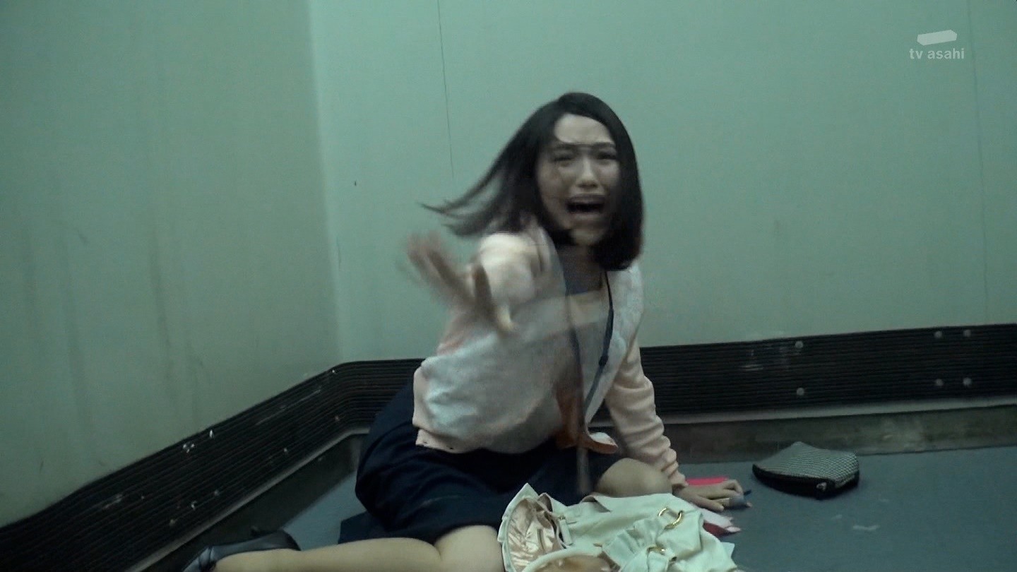 #7「エレベーター」 残業を終えて帰宅を急ぐOL・真由美(渡辺麻友)。慌ててエレベーターに飛び乗ると、突然エレベーターが停止してしまう。パニック状態になり非常通話ボタンを押すが、全く応答がない。すると、なぜかドアが開き一人の男が乗ってきた。扉が閉まると男は「やっと…二人きりになれましたね」と近づいてくる。叫びながら防犯カメラに向かい助けを求める真由美の体に、男の手が伸びてきて…。