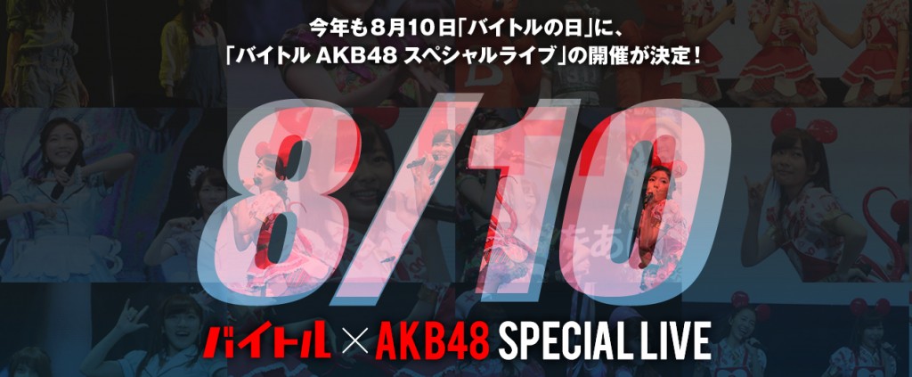 8月10日(水)に開催される「バイトル×AKB48 スペシャルライブ」をニコニコ生放送にて生中継されることが発表された。