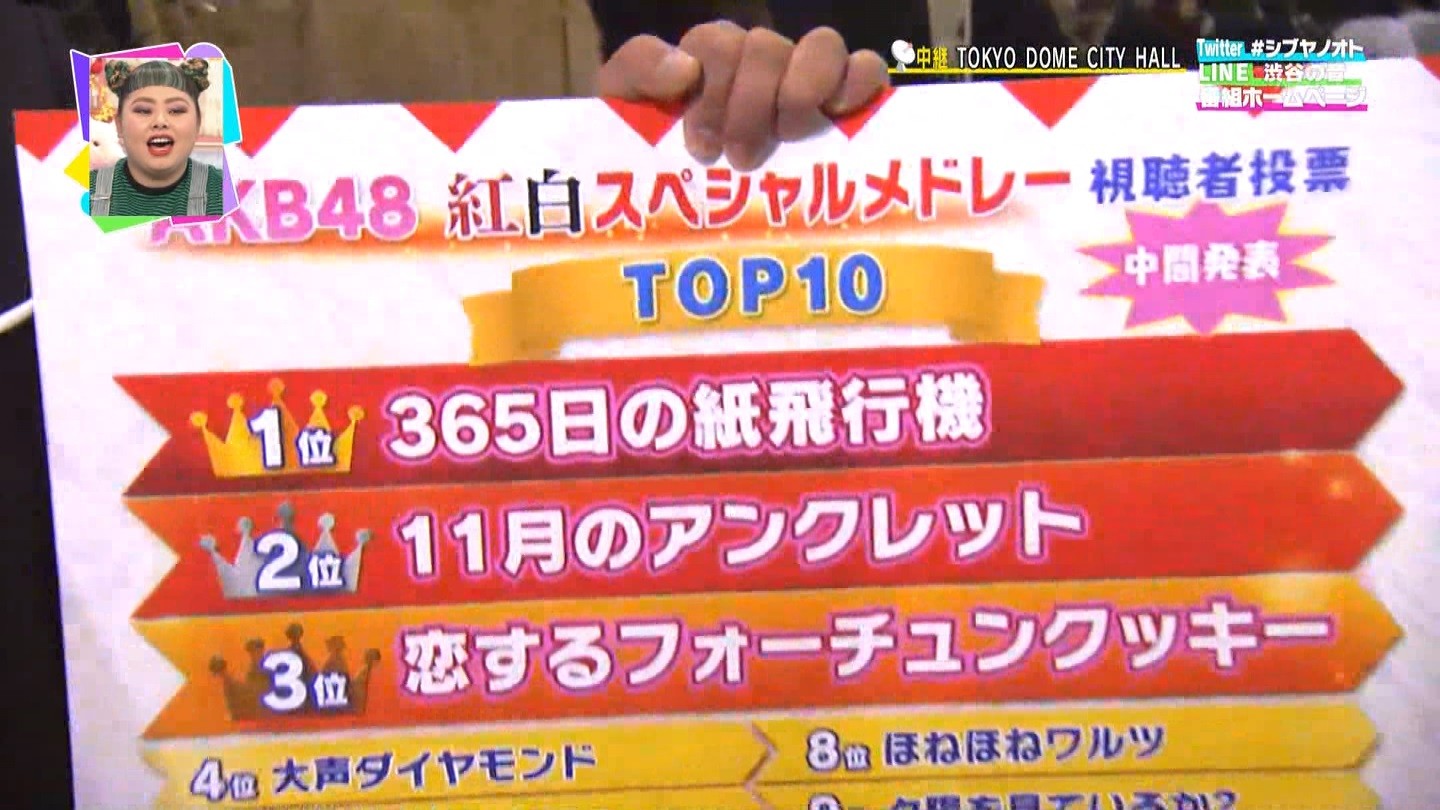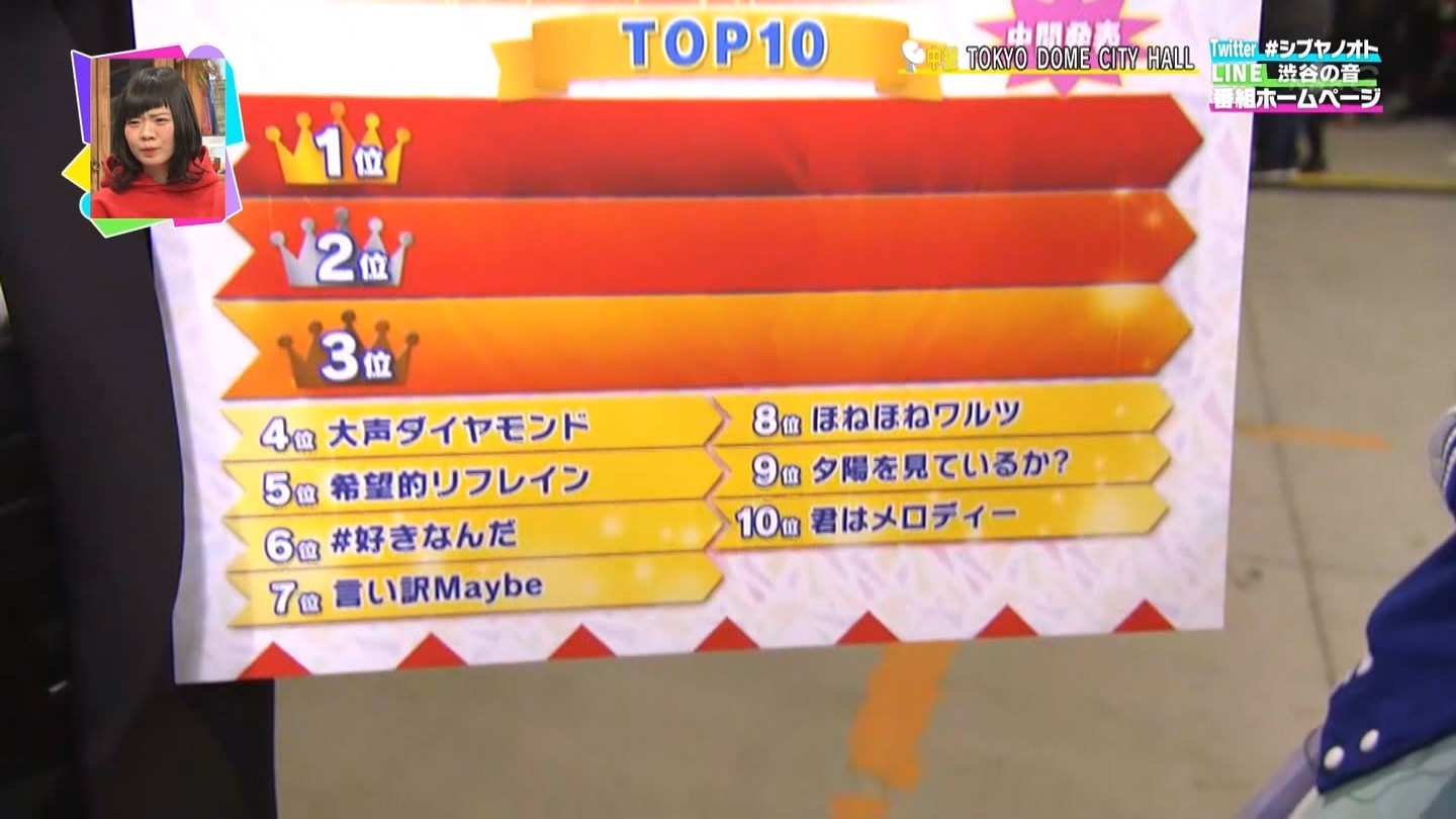 12月23日(土)に、「53位から11位までの順位」と「上位10曲の曲目」を発表。