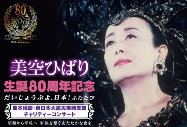 伝説の歌手・美空ひばり。彼女の生誕80周年を記念して、4月5日に東京ドームで、「美空ひばり 生誕80周年記念 だいじょうぶよ、日本!ふたたび 熊本地震・東日本大震災復興支援チャリティーコンサート」が開催されるが、この模様と美空ひばりの歌唱シーンが織り交ぜられた特別番組「美空ひばり生誕80周年 特別企画in東京ドーム 不死鳥コンサート2017」(TBS)が、4月10日19時から約4時間にわたって放送されることが決まっている。