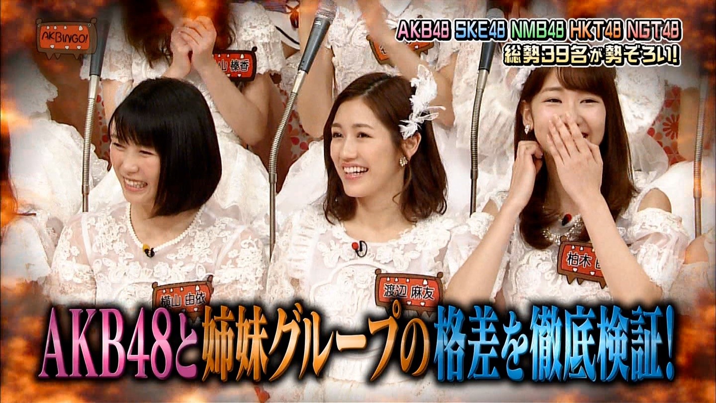 国内48全グループトップメンバーが大集合!姉妹グループがAKBに格差を訴える問題企画ここがズルいよAKB▽NMBがギャラ格差に初言及!?貧乏アイドルの驚き実生活を告白&ウーマン村本もタジタジNGTトンデモ新人の総選挙1位宣言にスタジオ衝撃&豪華な姉妹Gの楽屋に渡辺麻友が物申す&SKE松井珠理奈&チーム8小栗有以の失礼モノマネに柏木由紀がついに激怒▽貴重AKBヒットソングスタジオライブ映像一挙大放出
